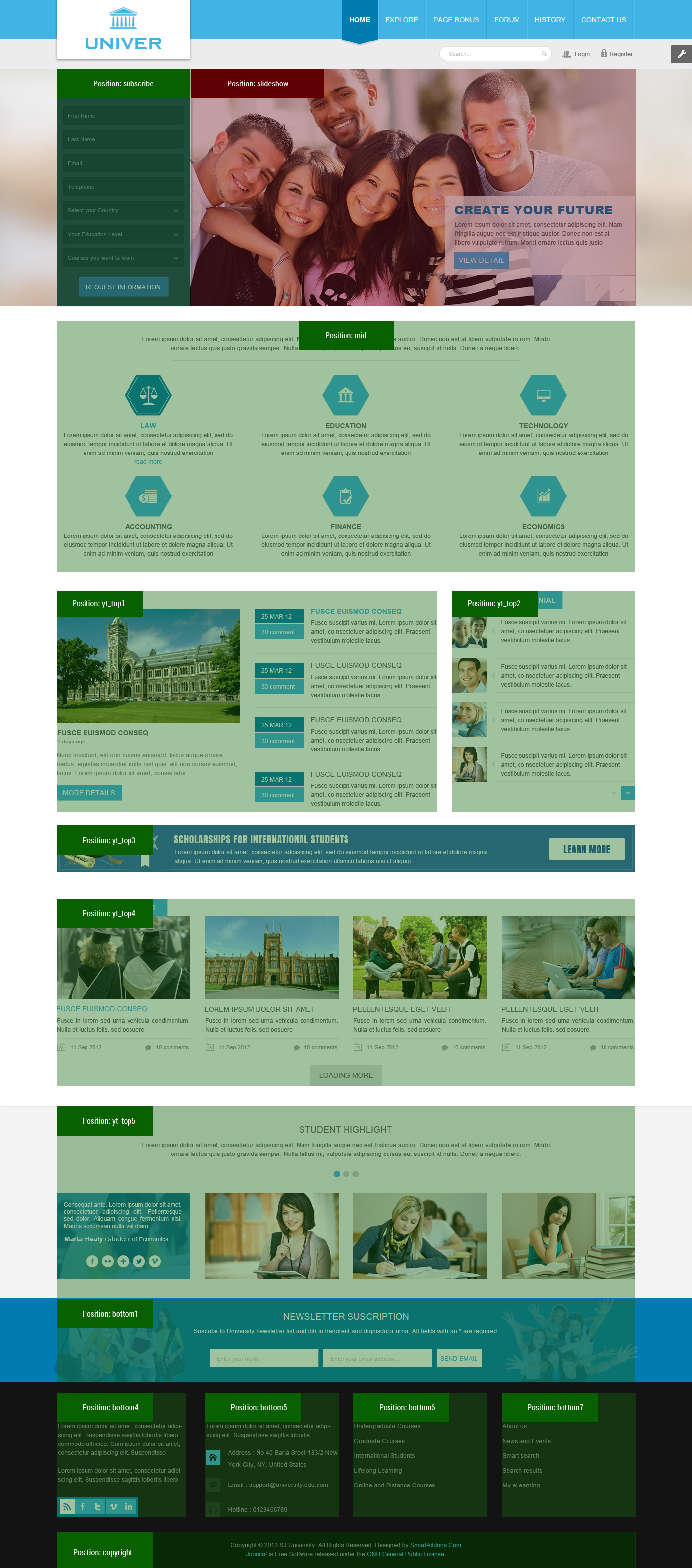 This Joomla! template supports a wide variety of module positions which can be archived automatically by the system.The module positions are fully collapsible mean that if there are no modules published in particular position, this module position will disappear and the other modules with take this place. Also you can have 2-Columns layout (content, left or right)